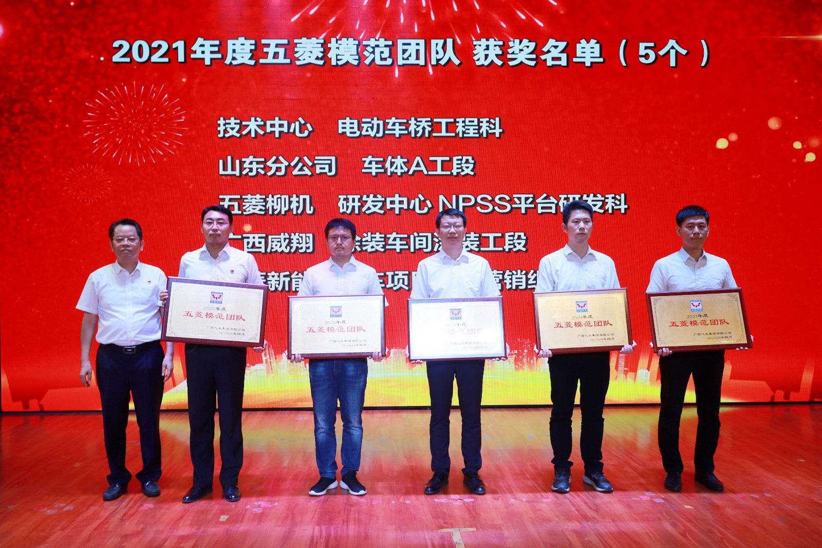 成績的取得是全體干部職工上下同心,實干拼搏的結(jié)果,一批批想干事、能干事、干成事的五菱人以時不我待的沖勁、只爭朝夕的干勁,生動演繹著“艱苦創(chuàng)業(yè),自強不息”的五菱精神。大會為過去一年涌現(xiàn)出的優(yōu)秀團隊和個人進行了表彰,共34個先進團隊、52名先進個人獲得榮譽。公司領導為獲獎團隊及個人頒獎,感謝他們?yōu)榧瘓F做出的卓越貢獻。