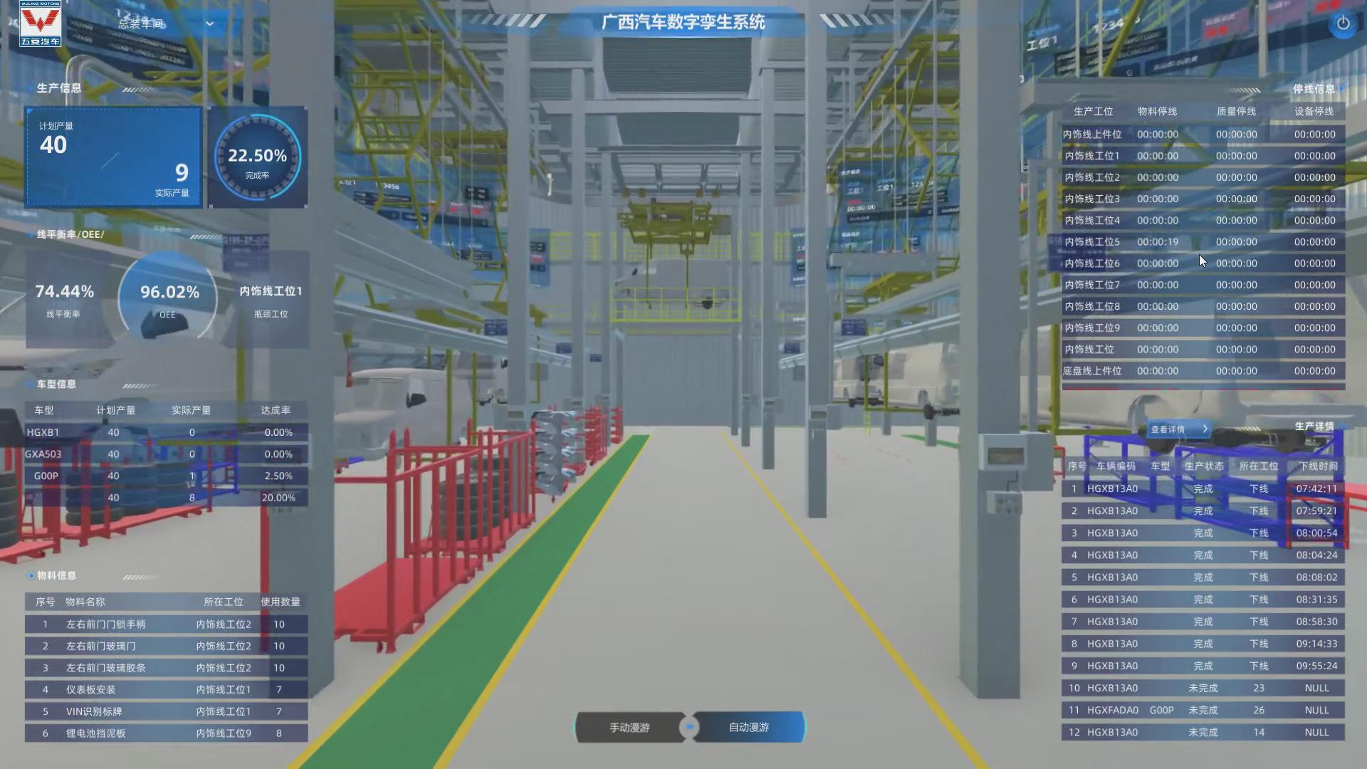 近幾年,廣西汽車集團加碼工業(yè)互聯(lián)網(wǎng),用“數(shù)”賦“智”,數(shù)字孿生項目就是其中一個重要的項目。目前,該項目已經(jīng)實現(xiàn)了一個工廠物理仿真應(yīng)用,新能源物流車焊裝、總裝2個車間物理仿真應(yīng)用,生產(chǎn)線370個以上數(shù)字孿生模型建模及設(shè)備信號接入,基于數(shù)字孿生技術(shù)的產(chǎn)品設(shè)計與仿真、協(xié)同工藝規(guī)劃、能效優(yōu)化分析、車間生產(chǎn)調(diào)度優(yōu)化、生產(chǎn)物流精準配送等功能。